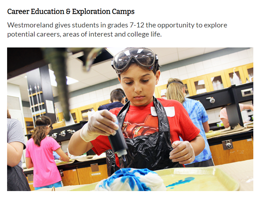 Westmoreland County Community College will be hosting several career exploration camps for students in grades 7-12 this summer at their main campus in Youngwood, PA.
